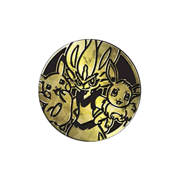 • 1 large metallic coin featuring Cinderace, Pikachu, and Eevee