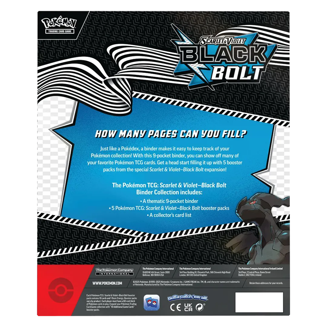 Just like a Pok dex, a binder makes it easy to keep track of your Pok mon collection! With this 9-pocket binder, you can show off many of your favorite Pok mon TCG cards. Get a head start filling it up with 5 booster packs from the special Scarlet & Violet—Black Bolt expansion!