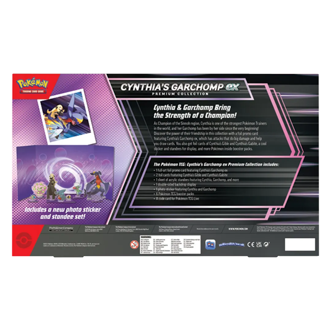 - 1 full-art foil promo card featuring Cynthia’s Garchomp ex