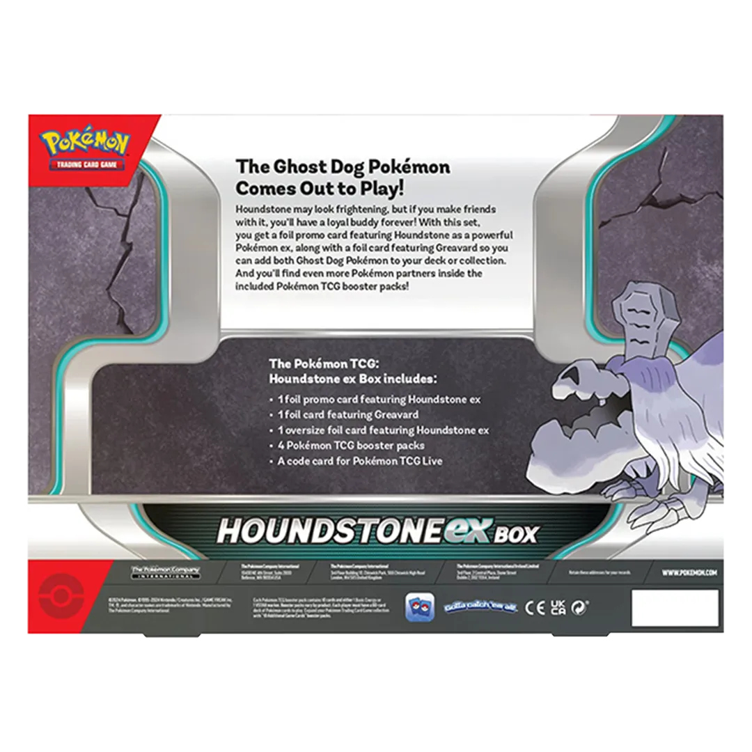 Houndstone may look frightening, but if you make friends with it, you’ll have a loyal buddy forever! With this set, you get a foil promo card featuring Houndstone as a powerful Pokémon ex, along with a foil card featuring Greavard so you can add both Ghost Dog Pokémon to your deck or collection. And you’ll find even more Pokémon partners inside the included Pokémon TCG booster packs!