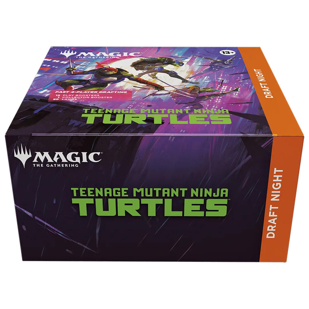 It’s a draft party in a box! Draft Night is the self-contained kit for hosting a Pick-Two Draft for four players. Pick-Two encourages fast, dynamic drafting that’s great for kitchen-table play or adding a dash of variety to game night! Crown the winner with the packed-in Magic: The Gathering® | Teenage Mutant Ninja Turtles Collector Booster (or you can keep it for yourself—we won’t judge). Just add pizza and you have the perfect night with friends!