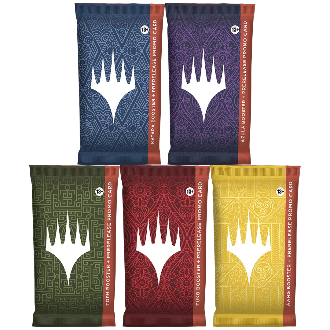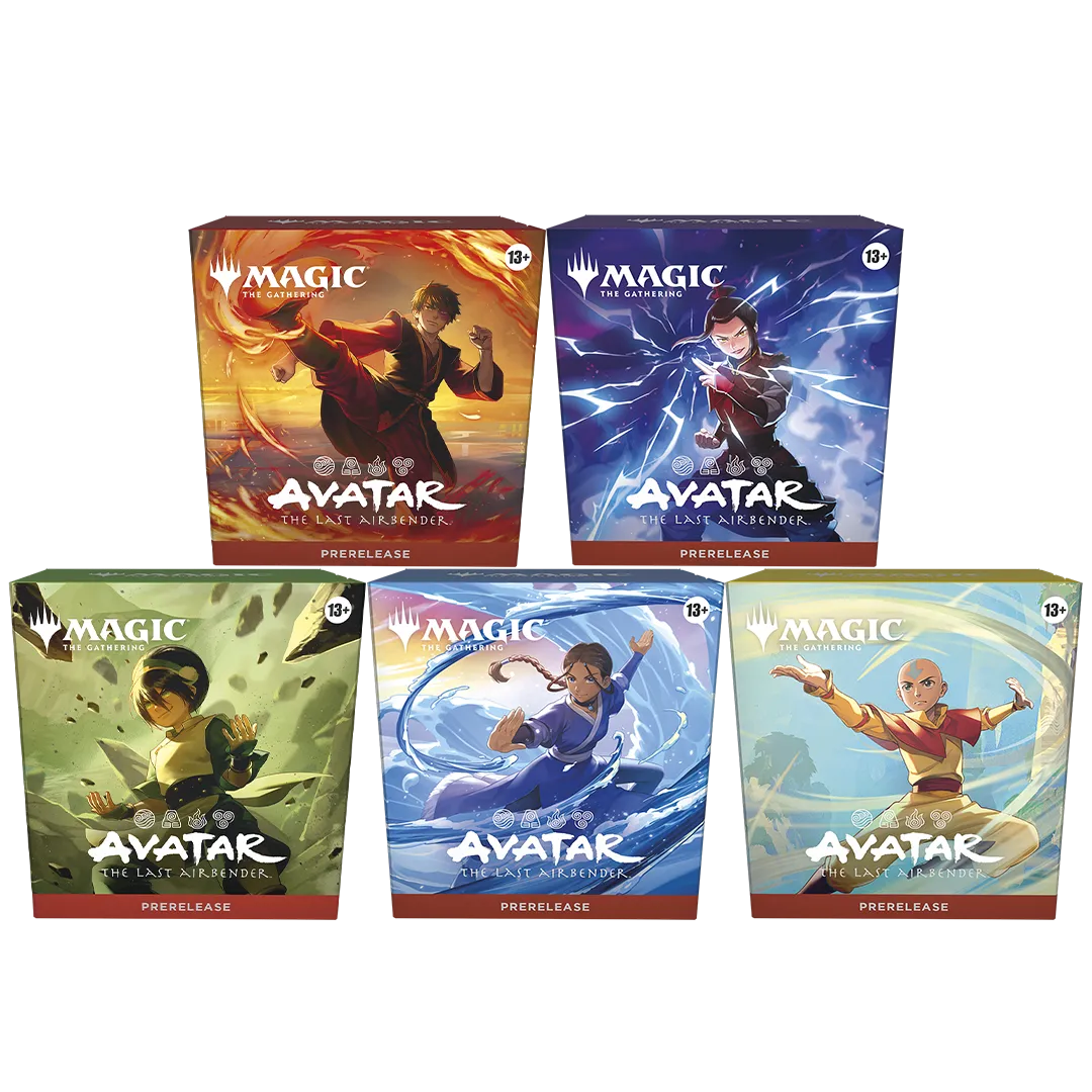 Prerelease is a players’ first opportunity to experience the story and strategy of Magic: The Gathering | Avatar: The Last Airbender. Each Prerelease Pack invites players to join Aang, Katara, Zuko, Toph, or Azula and explore their elemental identity through Magic gameplay. Including a seeded booster pack for each character, players will build a deck and begin their journey to master the elements.