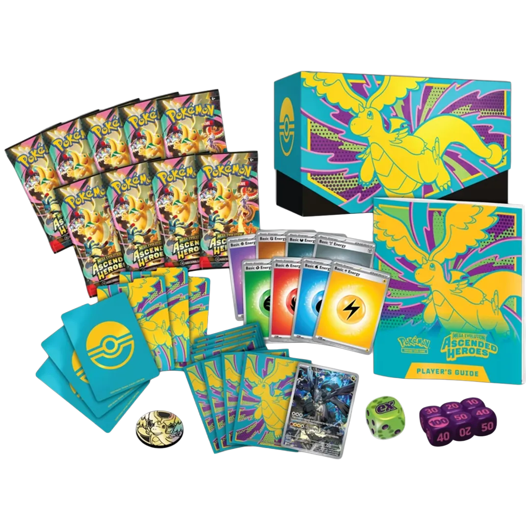 Marvel at the awesome potential as Mega Dragonite ex takes flight, leading a gathering of all-star Pokémon to battle! Trainer’s Pokémon and Stellar Tera Pokémon ex join returning and newly discovered Mega Evolution Pokémon ex, including some with special artwork showing off their biggest and boldest attacks. Celebrate the stars of Scarlet & Violet and the dawn of Mega Evolution with the Pokémon TCG: Mega Evolution—Ascended Heroes expansion!