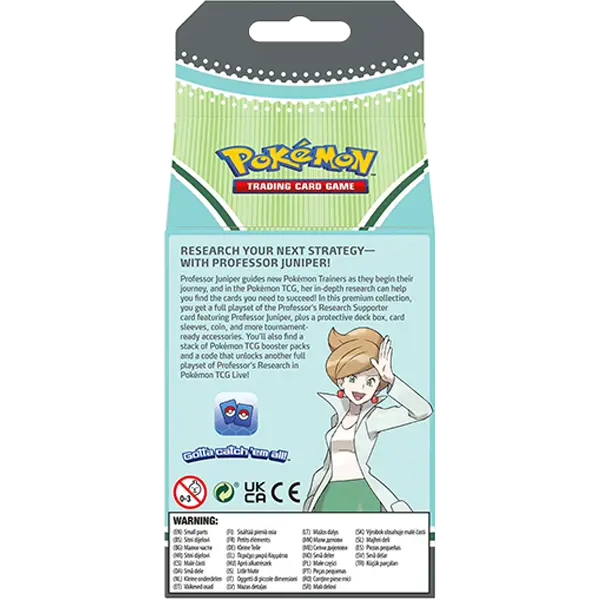 Professor Juniper guides new Pokémon Trainers as they begin their journey, and in the Pokémon TCG, her in-depth research can help you find the cards you need to succeed! In this premium collection, you get a full playset of the Professor’s Research Supporter card featuring Professor Juniper, plus a protective deck box, card sleeves, coin, and more tournament-ready accessories. You’ll also find a stack of Pokémon TCG booster packs and a code that unlocks another full playset of Professor’s Research in Pokémon TCG Live!