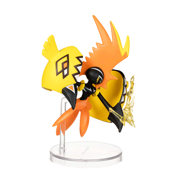 Tapu Koko guards the land. Tapu Koko is one of the Guardian Pokemon of the Aloha region, with a deep connection to the land itself. With the Tapu Koko figure collection, you get Tapu Koko both as a wild sculpted figure and as a never-before-seen foil promo card. Stand ready to Guard the islands with Tapu Koko.